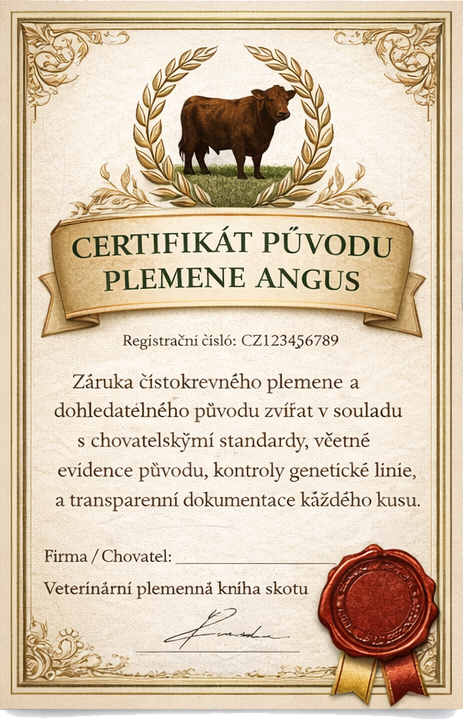 Velkou výhodou masa Angus je také jeho konzistentní kvalita. Při správném chovu není potřeba maso technologicky "dohánět" – chuť, struktura i nutriční hodnoty jsou přirozeným výsledkem života zvířete na pastvě, bez stresu a bez umělého urychlování růstu.